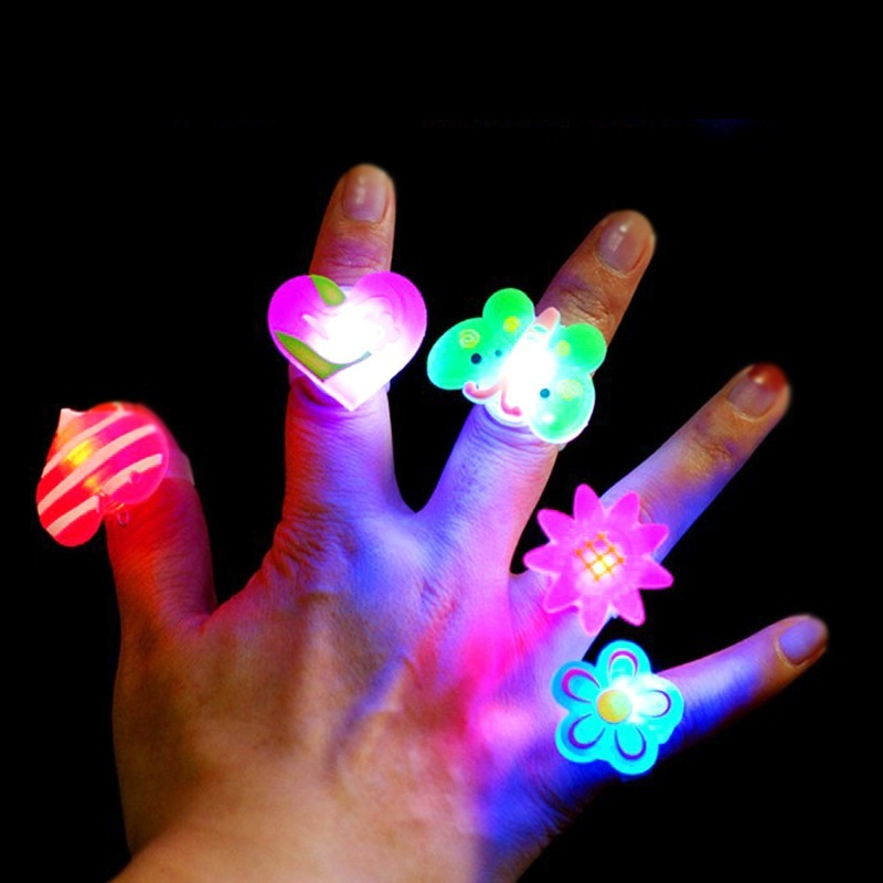 10 Pcs/ Pack Cartoon LED Light Up Flashing Finger Rings/ Random Style Luminous Finger Jelly Ring/ Kid's Gifts Glow In Dark Toy Party Favors